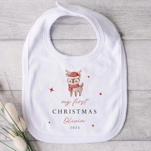 Personalised First Christmas Bib, 1st Christmas Baby Bib, Baby Christmas, Red Baby Bib, Xmas Clothing, 1st Christmas Outfit, Baby Bib