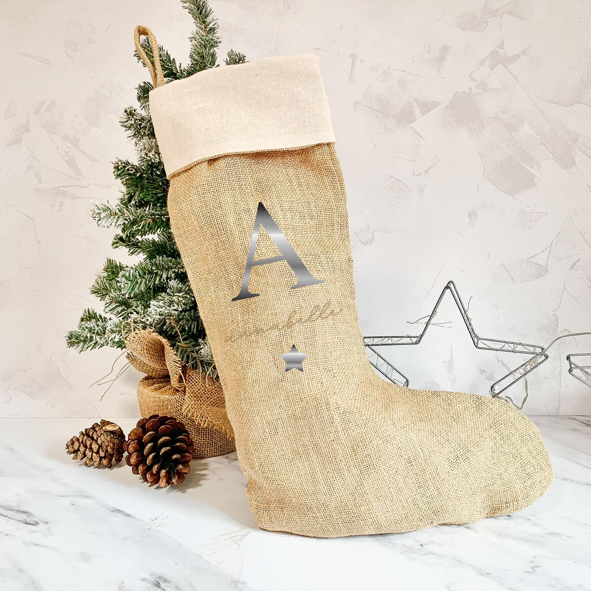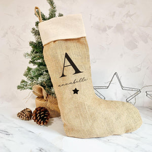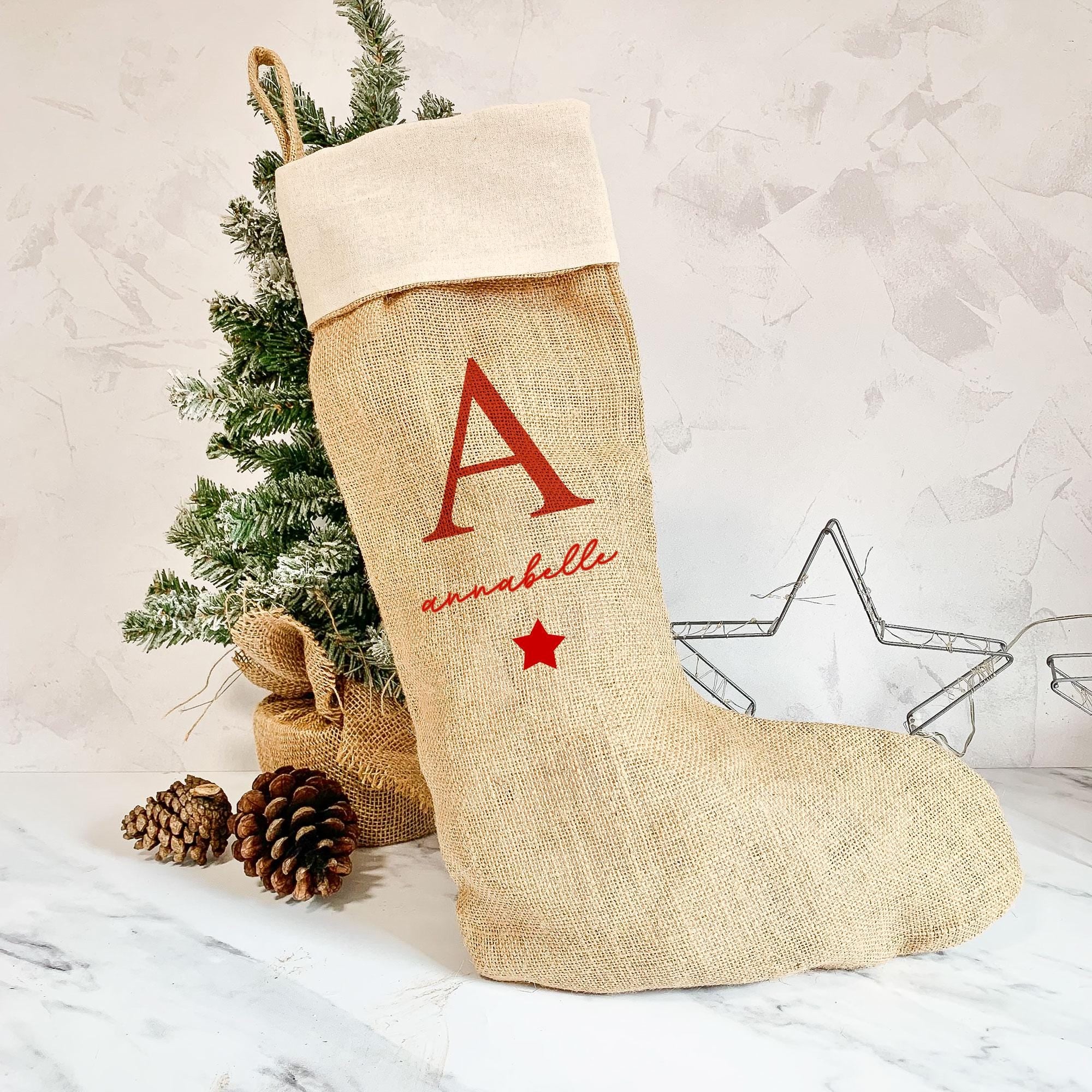 Personalised Jute Christmas Stocking, Jute Xmas Stocking, Name Christmas Stocking, Initial Christmas Stocking, Hessian Decoration,