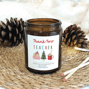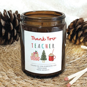 Personalised Teacher Christmas Candle with a lovely thank you teacher message and your personalised message to.