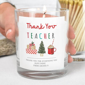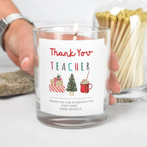 Personalised Teacher Christmas Candle with a lovely thank you teacher message and your personalised message to.