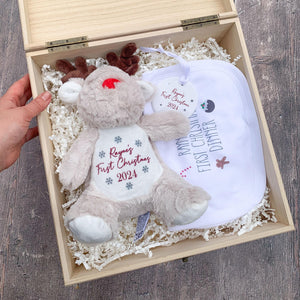 Baby's First Christmas Eve Box, First Christmas Gift Set, New Baby Xmas Gift Set, New Baby Christmas Gift Box, Engraved First Christmas Wood
