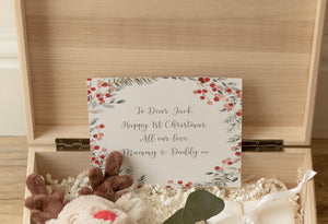 This stunning Personalised First Christmas Gift Box is the perfect Baby 1st Christmas Gift for your little one this Christmas. All in a wooden engraved box.