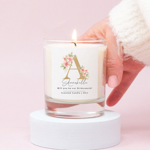 Bridesmaid proposal question "Will You Be My Bridesmaid?" - a moment of love, friendship, and everlasting memories captured in a scented candle.