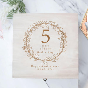 Engraved Anniversary Keepsake Box, Personalised Wooden Anniversary Memory Box, Wood Anniversary Gift, 5th Couple Anniversary Gift, Year Gift
