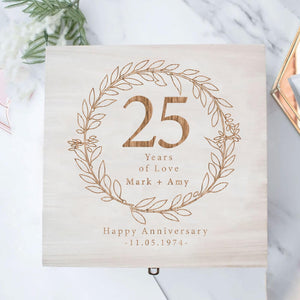 Fill our engraved Engraved Anniversary Keepsake Box with lovely memories of your special days!