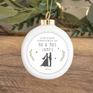 First Christmas Mr and Mrs | First Christmas as Mr and Mrs Ornament | Newlywed Ornament | New Couple Bauble | Couple Christmas Keepsake