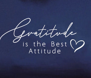 A unisex Gratitude is the Best Attitude Tshirt in a navy blue.