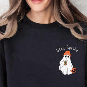 Halloween Stay Spooky Sweater, Stay Spooky Sweater, Retro Halloween Jumper, Ghost Top, Cute Ghost Sweater, Retro Sweater, Coffee Jumper