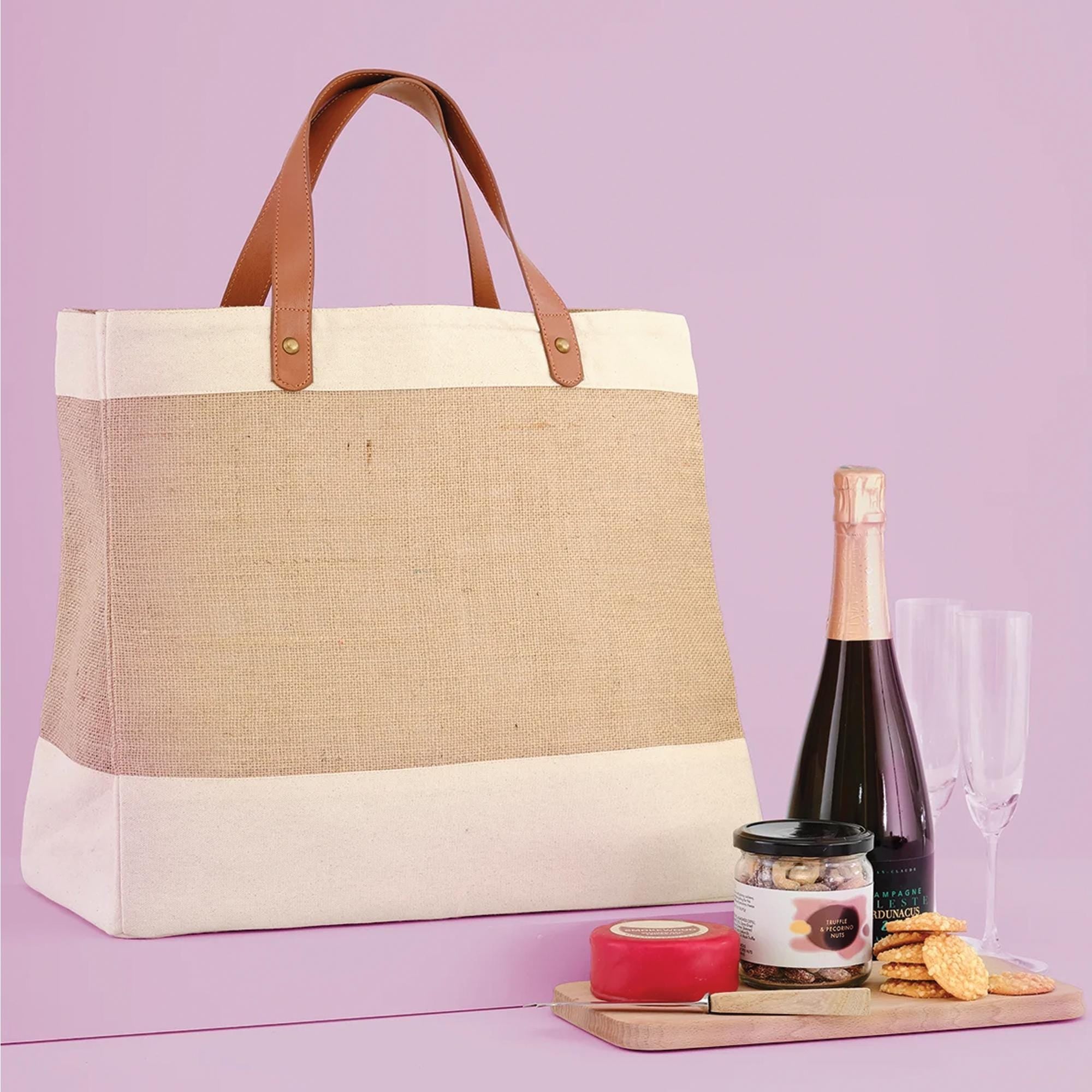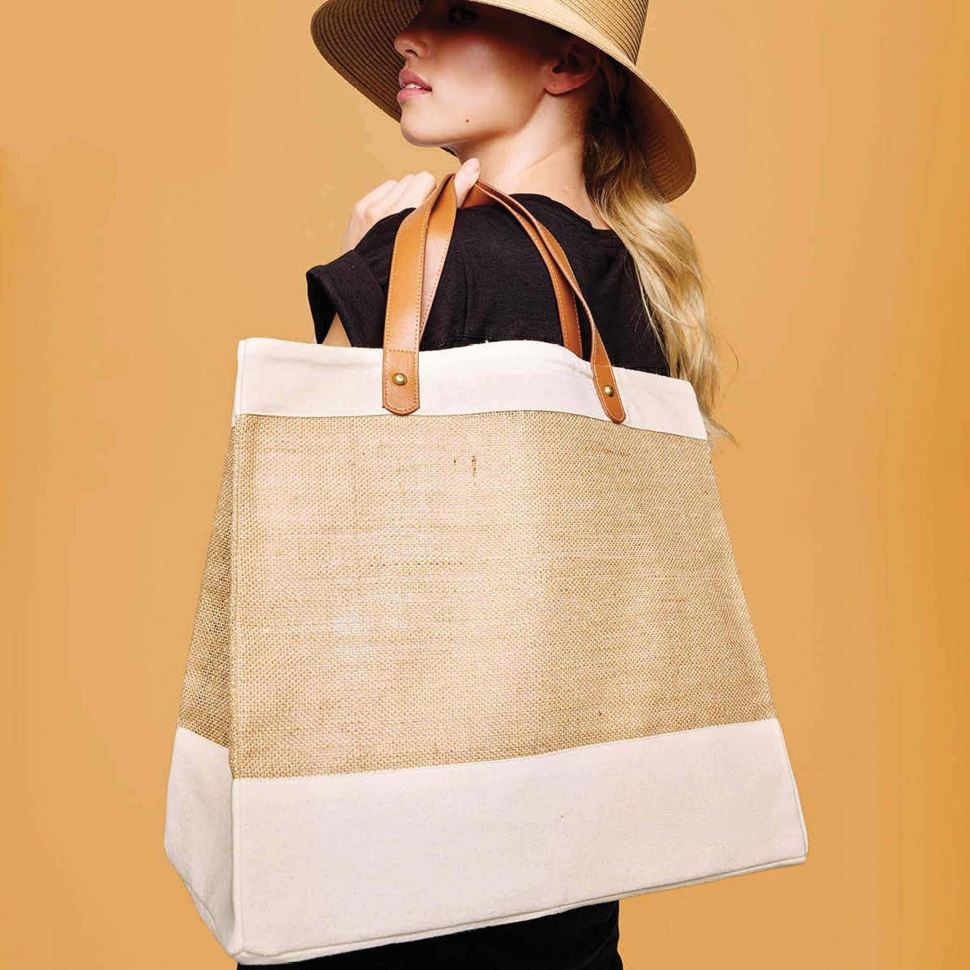 Elevate your everyday style with our personalized Jute Tote Bag Personalised - the perfect eco-friendly shopping companion that combines natural beauty with practical design. Crafted from a blend of 100% jute and recycled cotton canvas, this tote is not only sustainable but also incredibly durable, making it ideal for shopping, beach trips, travel, or everyday errands. The sleek faux leather accents add a touch of sophistication, while the spacious center panel provides ample space for custom logos, bold prints, or your favorite designs.