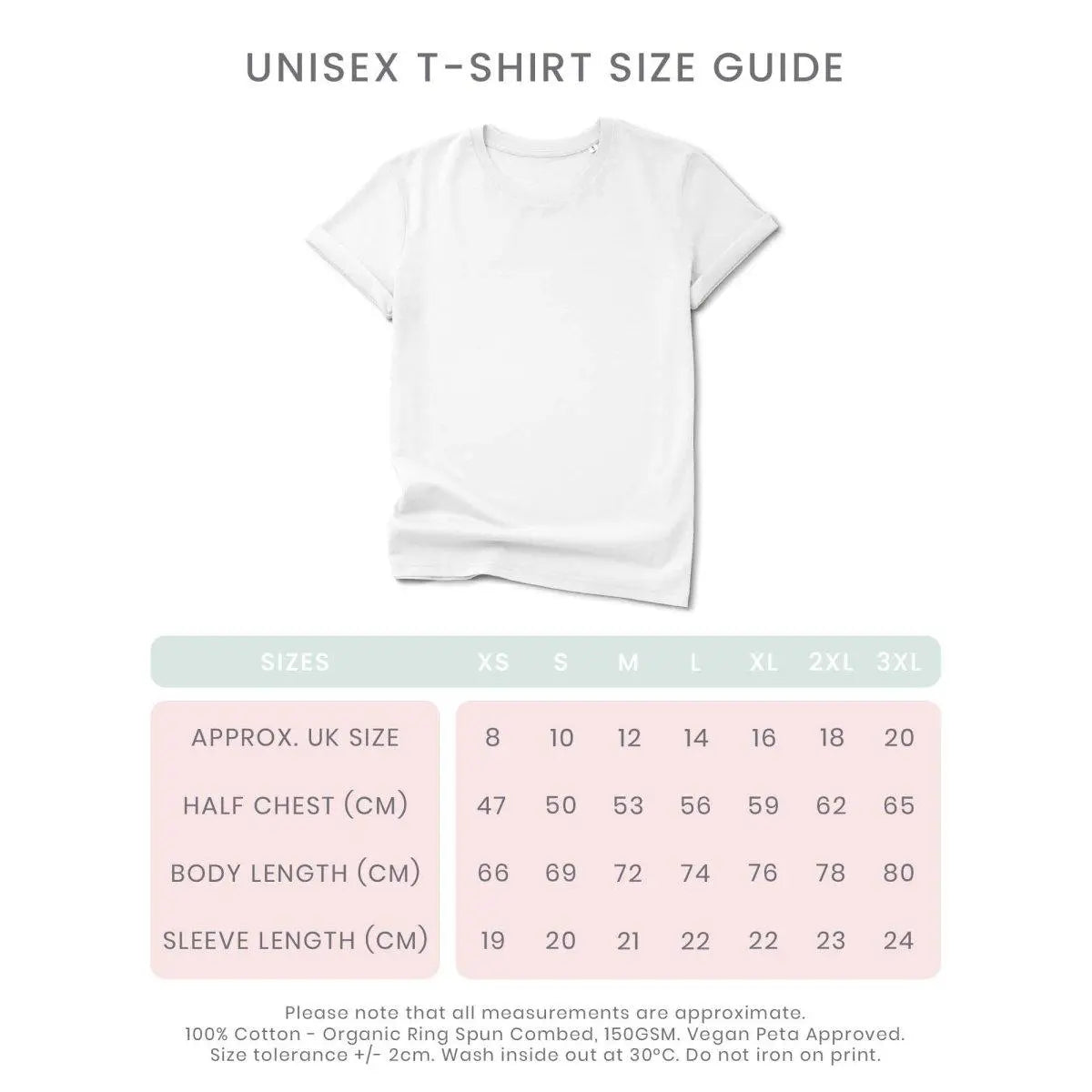 Each t-shirt is made from high-quality ringspun cotton for a luxury feel. Available to purchase in a range of sizes. Please refer to product images for help with sizing and care instructions.