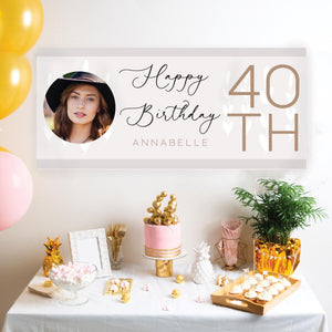Personalised 40th Birthday Banner, Neutral 40th Birthday Banner, Age Photo Birthday Banner, Birthday Banners, Custom Photo Birthday Banner