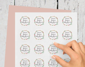 Personalised Baby Shower Stickers pack of x12 individual stickers.