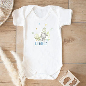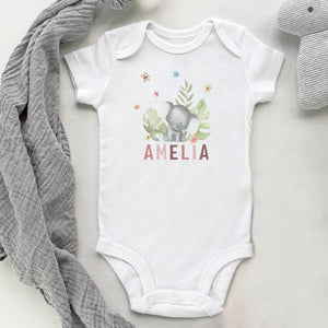A beautiful Personalised Baby Vest specially printed for your little one with their name and a cute elephant.