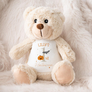 Our Personalised Baby‘s First Halloween Teddy is super cute and features your child‘s name.