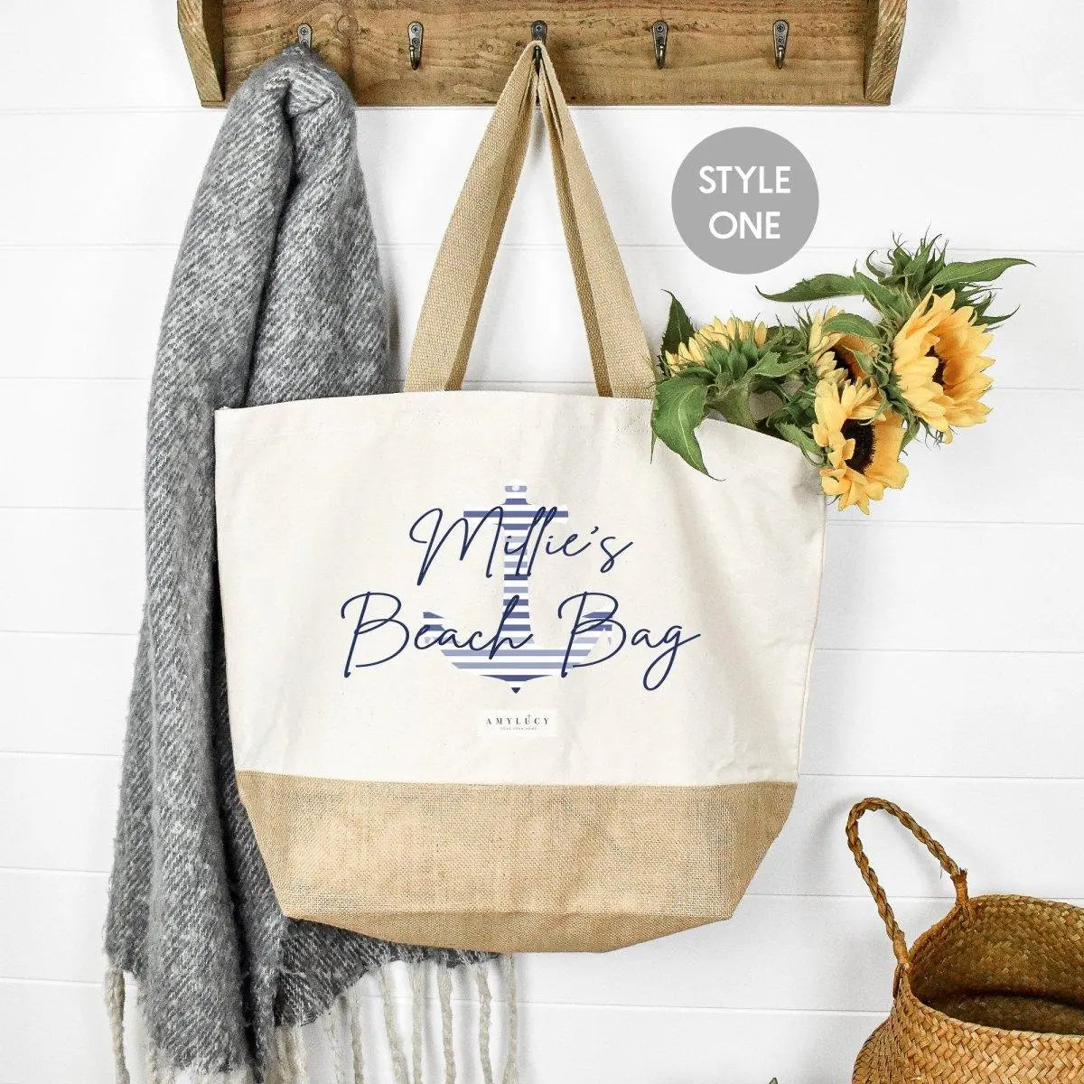 Personalised Beach Bag with an anchor print from Amy Lucy designs. A new product in our new holiday range that's perfect for your holidays this summer!