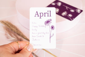This Custom Birth Flower Card is so lovely and will act as a memento that your loved one can keep. It is a lovely keepsake for a purse, wallet or as a cute bookmark.