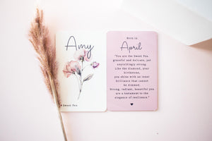 This Custom Birth Flower Card is so lovely and will act as a memento that your loved one can keep. It is a lovely keepsake for a purse, wallet or as a cute bookmark.