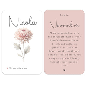 Our Personalised Birth Flower Card features a beautiful month birth flower drawing with your name on the front and a message about your birthday on the back.
