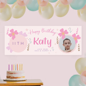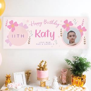 Personalised Birthday Banner, Girl Pink Birthday Banner, Age Photo Birthday Banner, Birthday Banners, Custom Birthday Banner, Birthday