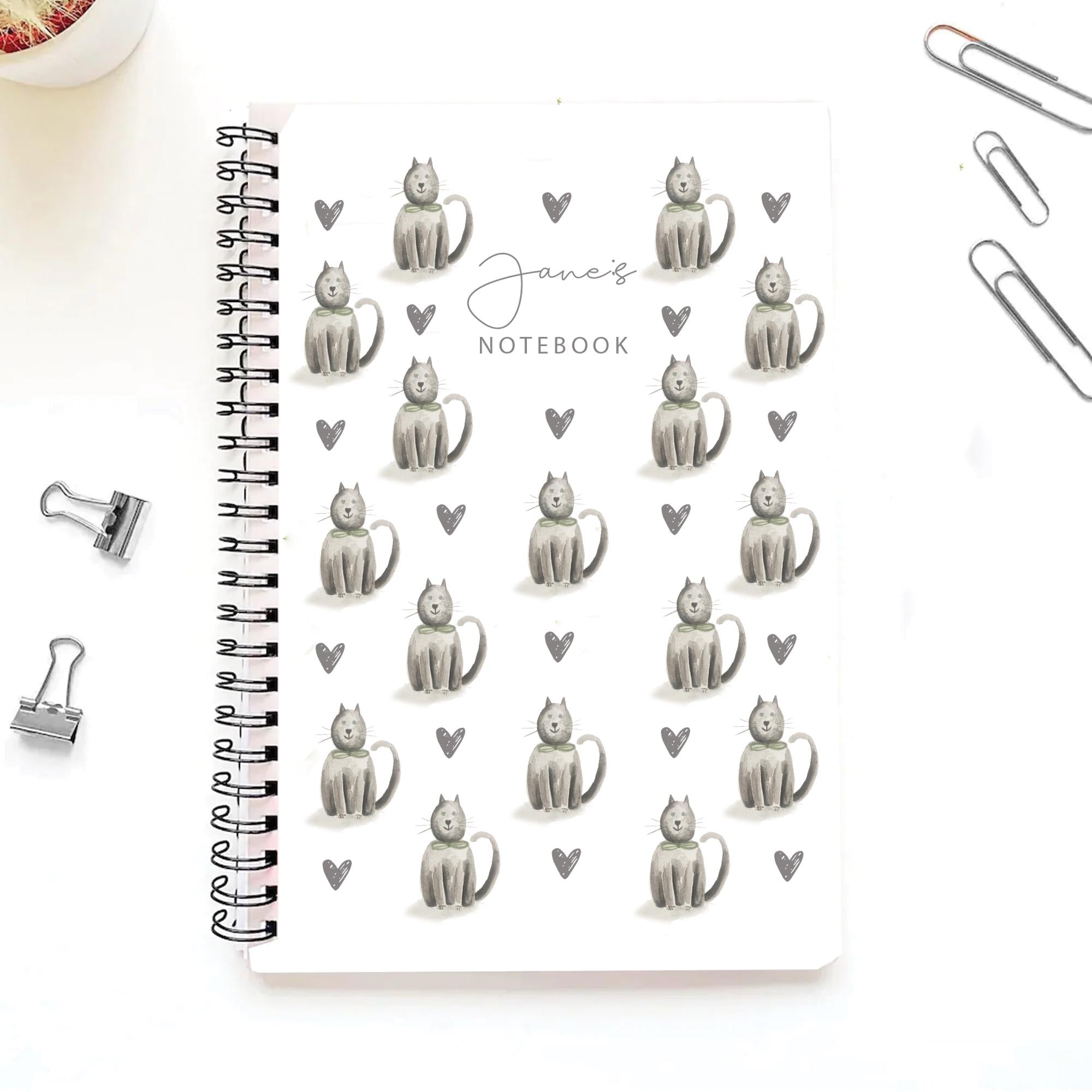 This custom Name Cat Gift Notebook is not only a practical way to store special thoughts and future plans but it also looks stunning and features a hand drawn watercolour black cat and love heart print.