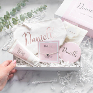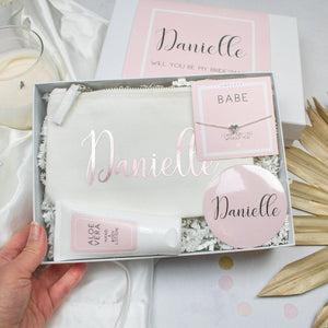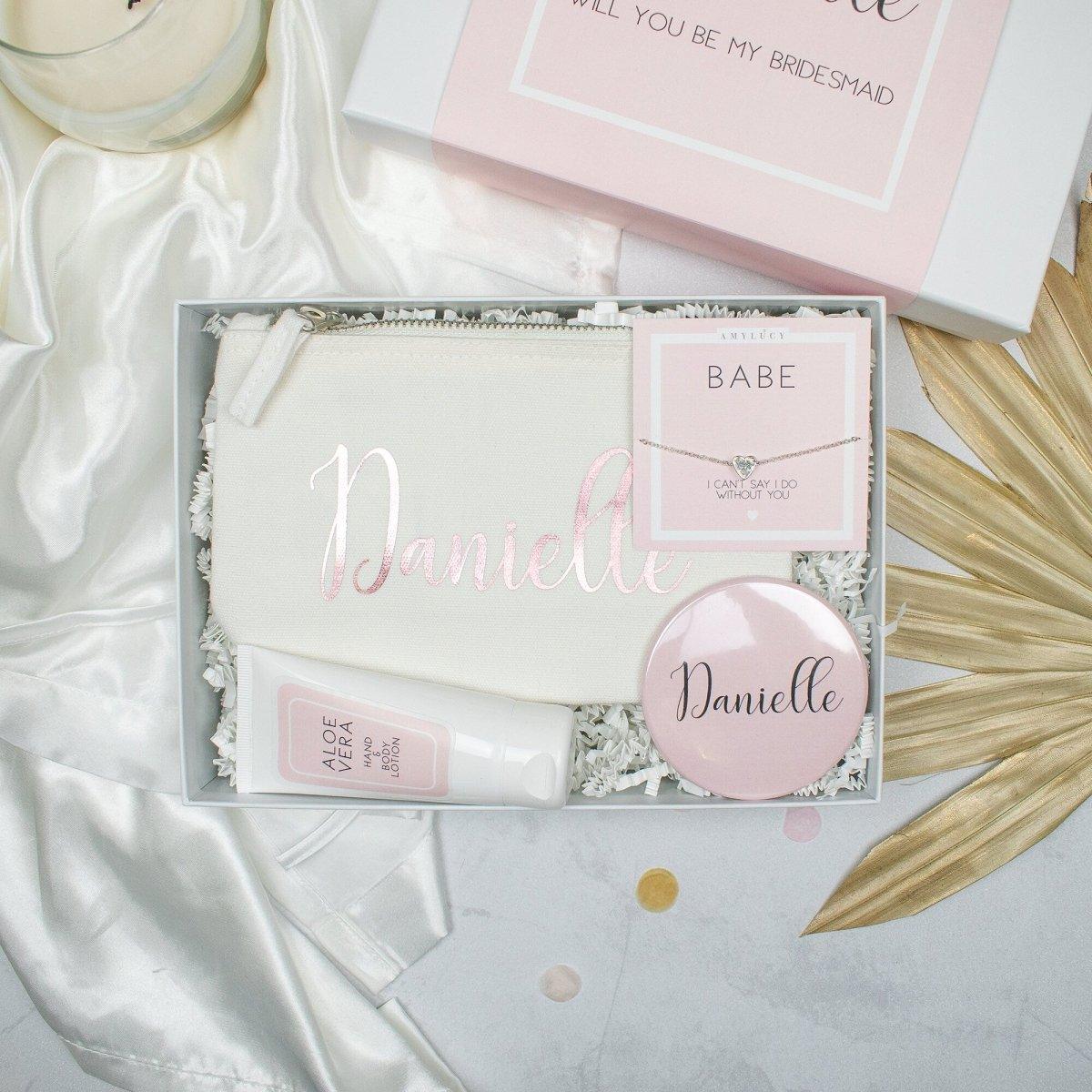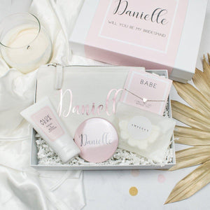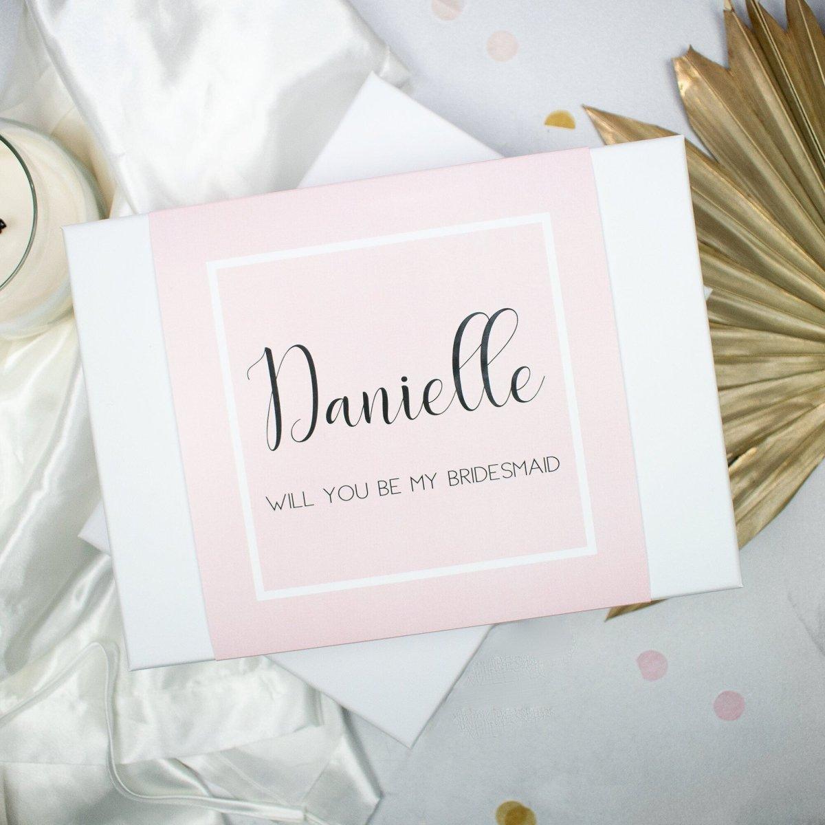 - Featuring a stylish blush pink design, this personalised bridesmaid proposal gift box adds a touch of elegance to your special occasion.