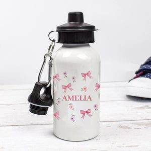 Personalised Bows Water Bottle, Cute Bows School Bottle, Kids Pink Bows Drink Bottle, Bow School Flask, Kids Children Student Drinks Cup.