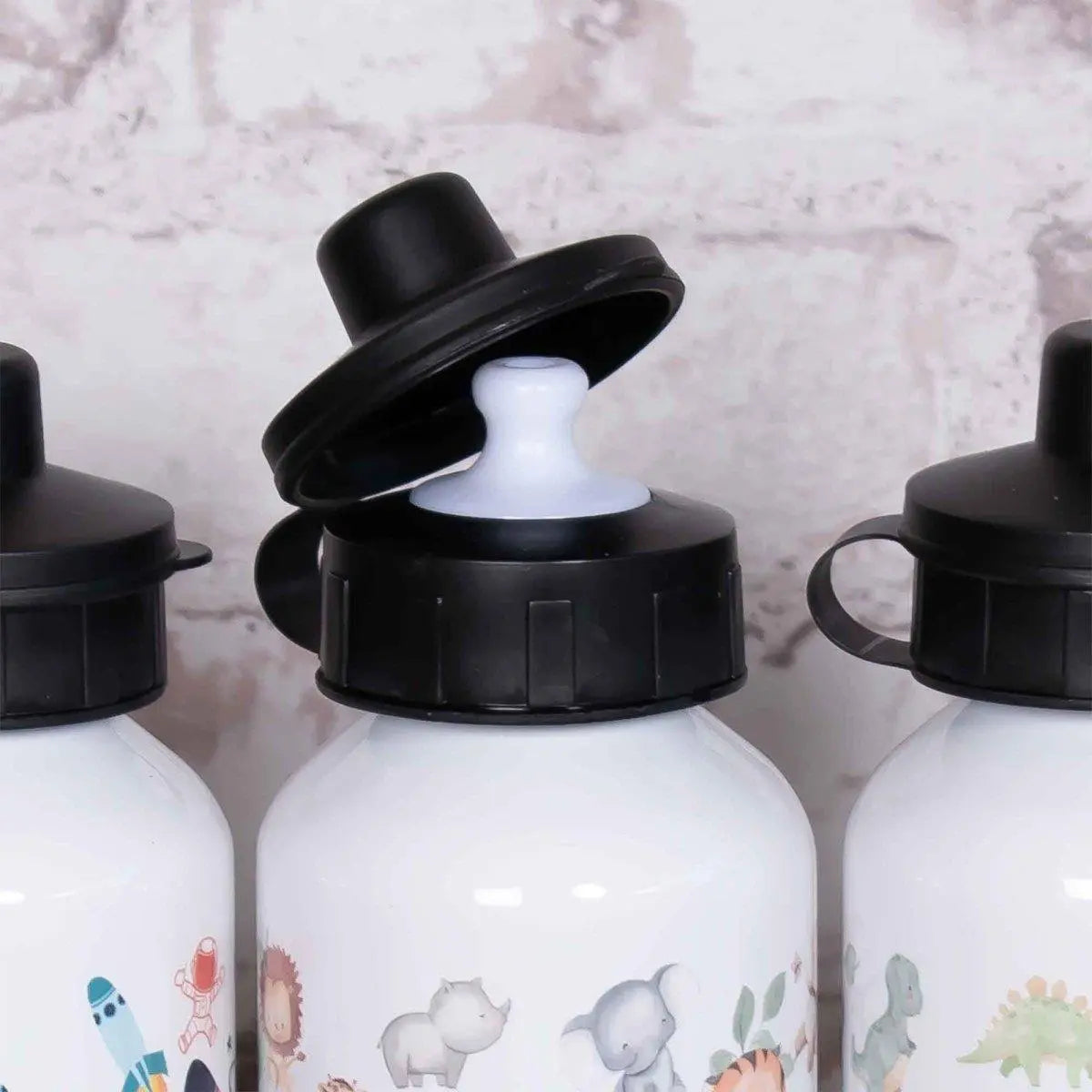 Kids Personalised School Bottles with a EASY FLIP UP LID AND A SUCK SPOUT.