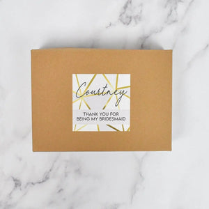 This stunning gift box features the original "Geo" pattern design from Amy Lucy. There is no better way to say thank you to your bridesmaids for standing all your meltdowns and bridezilla moments than to offer them this well presented gift.