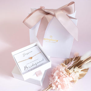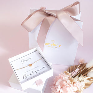 A beautiful Personalised Bridesmaid Gift presented in a pretty high quality gift box.