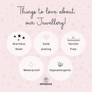You will receive 1 x Gold Heart Necklace on thick White Card (9.5cm x 9.5cm) with your chosen design, message and Name.