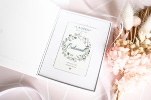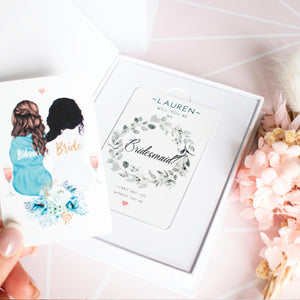 Our Personalised Bridesmaid Gift is such a beautiful keepsake card a high quality printed metal. The card comes either mounted on a card or in a luxury gift box.