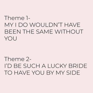 Thank You Bridesmaid, Thank You M O H, Thank You Chief BM, Will You- Bridesmaid, Will You-M O H, Will You Chief BM |