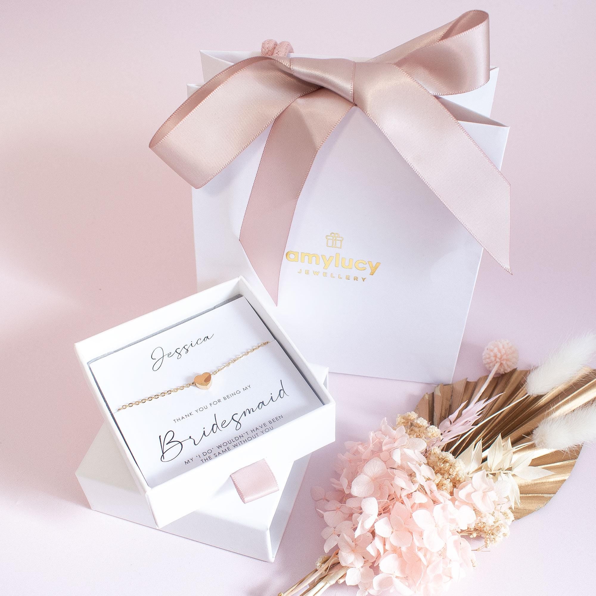 A beautiful Personalised Bridesmaid Gift presented in a pretty high quality gift box.