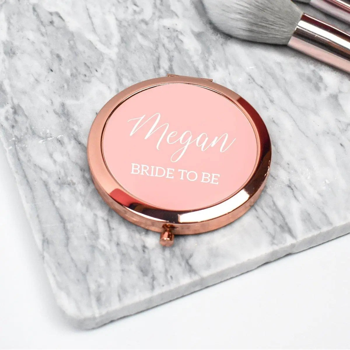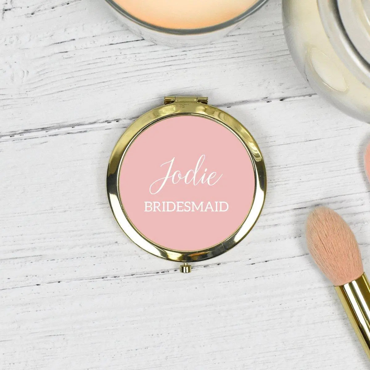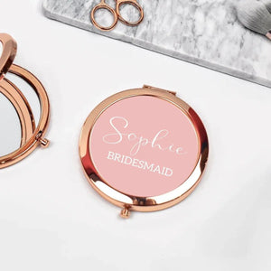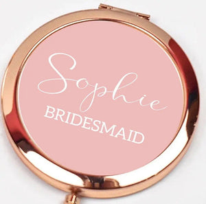A gorgeous Personalised Bridesmaid Pocket Mirror featuring your chosen name.