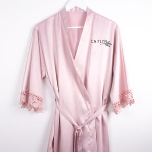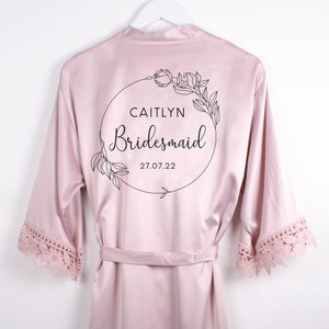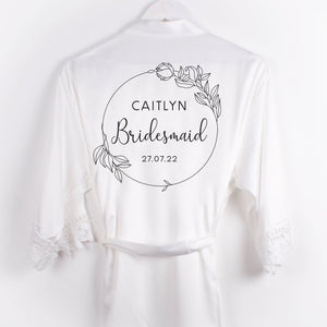 These Bridesmaid Robes Personalised with your name and floral details are decorated and finished by hand in our warehouse and are shipped quickly with the royal mail.
