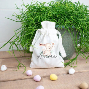 This adorable Personalised Bunny Easter Mug is the perfect gift set for your little one this Easter. Our Easter hot chocolate mug is available in three different mug types- a standard ceramic mug, a luxury tin mug, or an unbreakable mini plastic mug (this option is ideal for little hands!). This Child's Easter Cup gift set features a stunning, spring bunny design and is suitable for both girls and boys. The matching bag comes filled with delicious mini egg chocolates that are great for popping in an Easter hot chocolate or for enjoying on their own. Each mug and bag is personalised with a name of your choice for a special touch. Great for those looking for a personalised Easter gift set or a personalised Easter cup. Bring these Easter mugs out year after year for a fun family Easter tradition. Please note that each of the items in this set are sold separately. If you would like to purchase an Easter mug & bag set, please add your desired mug type, followed by the bag with mini eggs, to your basket individually. Your items will still arrive packaged together and postage costs will combine at checkout, so you won't have to pay for postage twice. Please remember to add the name that you would like on your item in the 'add your personalisation' field before adding the items to your basket. Suitable as a Easter Egg Bag. Key Features: • Easter mug with matching mini egg bag available • Personalise with a name • Adorable little bunny design • Design printed on both size • Standard ceramic mug: 284ml/10z capacity (dishwasher safe) • Unbreakable plastic mini mug: 170ml/6oz capacity (dishwasher safe) - BPA-free • Tin mug: 12oz/340ml capacity (handwash only) • Satin bag filled with mini eggs