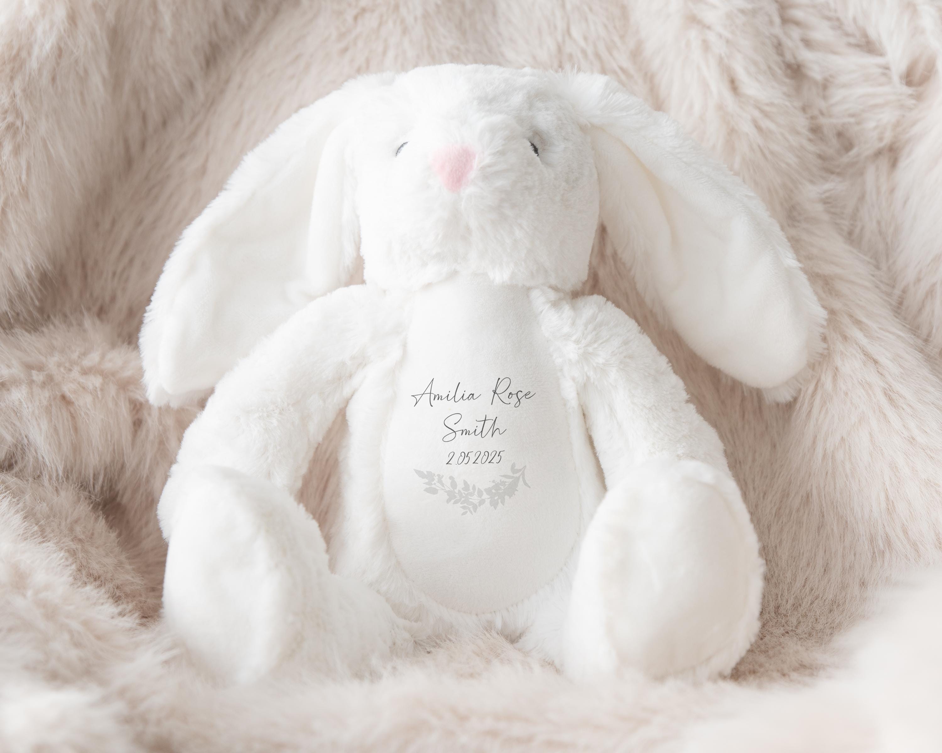 Personalised Bunny Rabbit, New Baby Gift, Customised Plush Soft Toy, Your Name Teddy, Cuddly Toy, Girls and Boys Teddy Baby Shower Gift