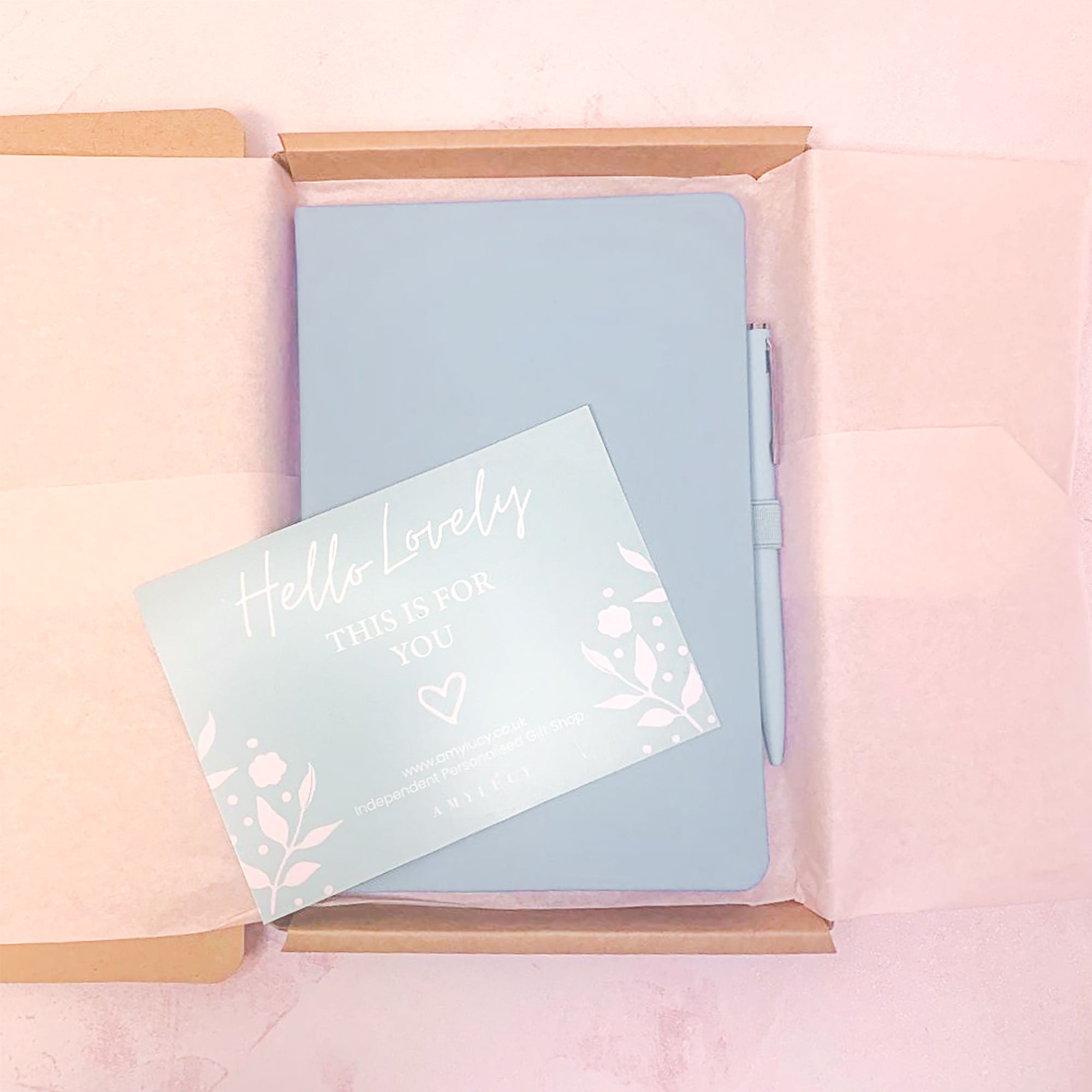 This Mum Notebook has a pocket at the back a page keeper ribbon, the choice to add a matching pen and the choice of colour.