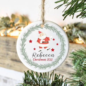 A Beautiful Personalised Child's Santa Christmas Bauble printed by hand in our warehouse in Shropshire. This original Christmas Tree Santa Decoration is fun a meaningful and can be used year after year. Choose this as part as your Tree Decor this Christmas. Personalised Baubles are a must this year and so special too. Key Features: - Personalised - Round shape - Flat Ceramic Bauble - Dimensions: 7cm x 7cm x 0.3cm (approx) - With Jute String - Long Lasting Print