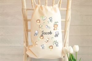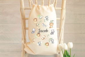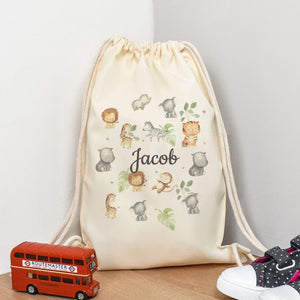 Personalised Childs Jungle Gym Bag, Jungle School Drawstring Bag, Child Jungle Bag, Kids Safari Bag, Nursery Bag, School Club Bag