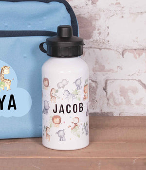 This Jungle Water Bottle Set features your child's name so it is easily found by your child at school or nursery.