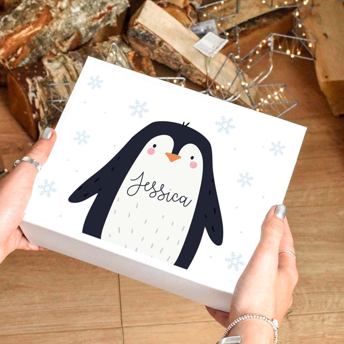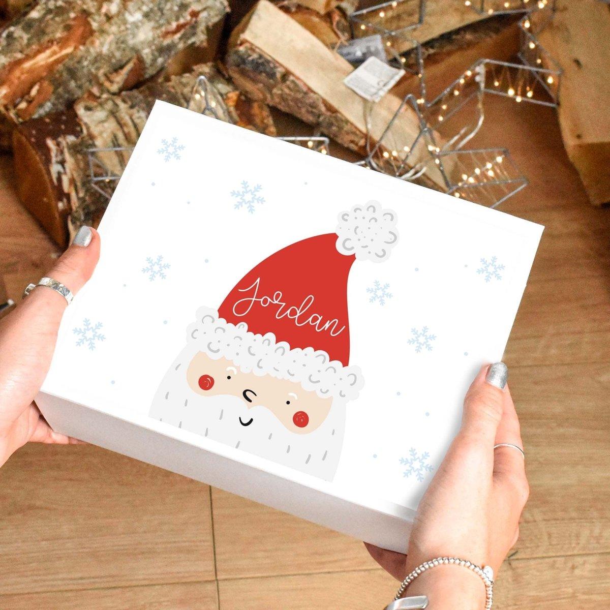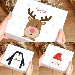 Personalised Christmas Eve Box made from a quality strong card with a luxury matte laminated finish and a magnetic close strip. A beautiful Reindeer Christmas Eve Box featuring your chosen name, you will be so happy to receive a white box with labels you will need to assemble at home by removing the strips and pushing the sides in together. PLEASE NOTE THIS WILL ARRIVE FLAT -ASSEMBLE AT HOME. This lovely Empty Xmas Eve Box is available in three different designs and two sizes the largest is as long as an A4 piece of paper. Use this Girls Xmas Box to fill with our other Christmas gift box fillers like our- mug and hot chocolate sets, our sweet jars or even our adorable teddies. This Empty Christmas Box will not disappoint it will help your children feel the magical joy of Christmas. This Kids Xmas Eve Box features a lovely theme and your child's name. Choose this Kids Christmas Eve Box to make your child's Christmas that little bit more exciting. Options- 1. Large Empty Box with personalised label only Box Size 29cm length, 11cm height, 22cm width Magnetic Lid Label On Box Assemble At Home 2.-Standard Empty Box with personalised label only Box Size 21cm length, x 8cm height x 17cm width Magnetic Lid Label On Box Assemble At Home