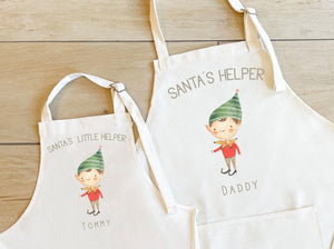 These Christmas Matching Apron set comes in your choice of elf and includes your name.
