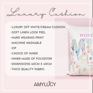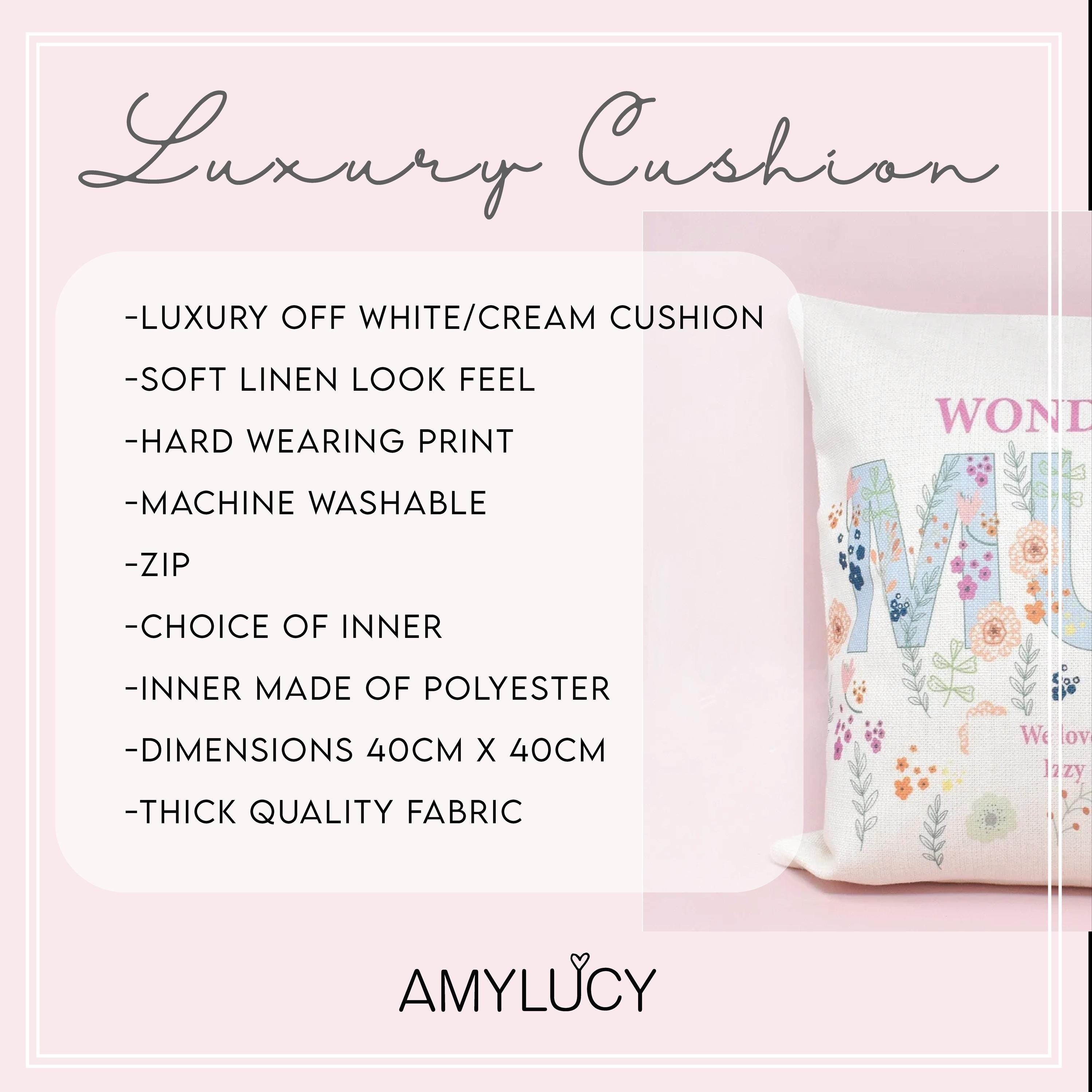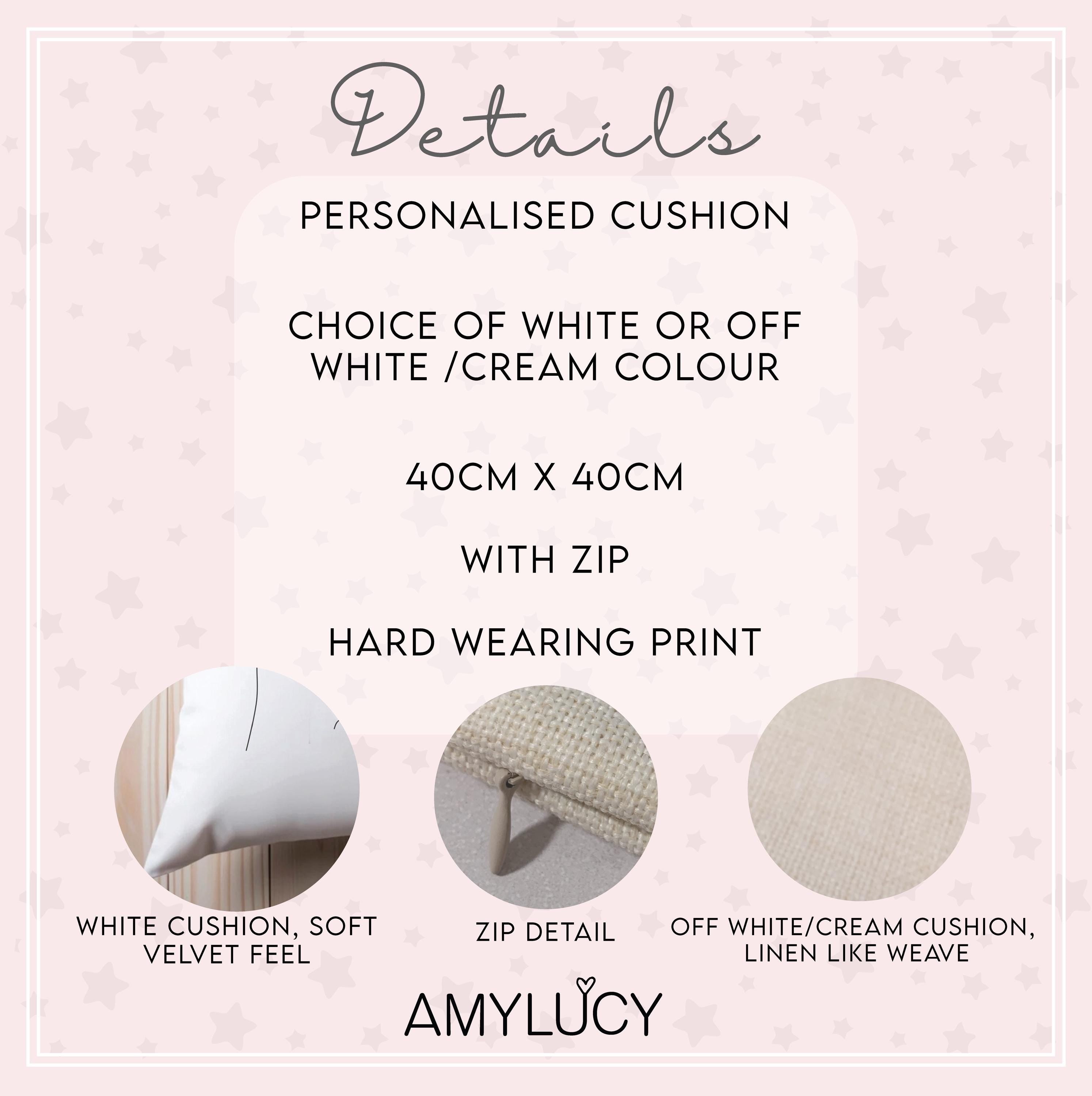 Our Personalised Christmas Family Cushion is a lovely white cushion with a long lasting quality print.
