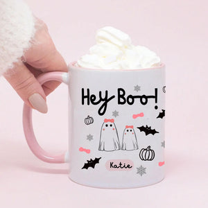 Personalised Cute Ghost Mug, Hey Boo Ghost Mug, Halloween Girly Mug, Fall Autumn Mug, Name Ghost Mug, Pink Halloween Mugs, Gift for Her