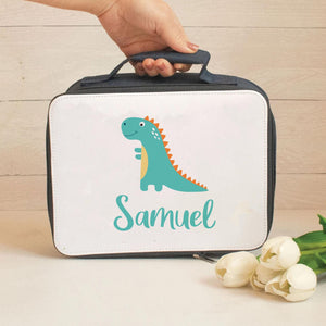 A lovely Personalised Dinosaur Lunch Bag the perfect size for you child at school to fit all his much needed fuel for school.