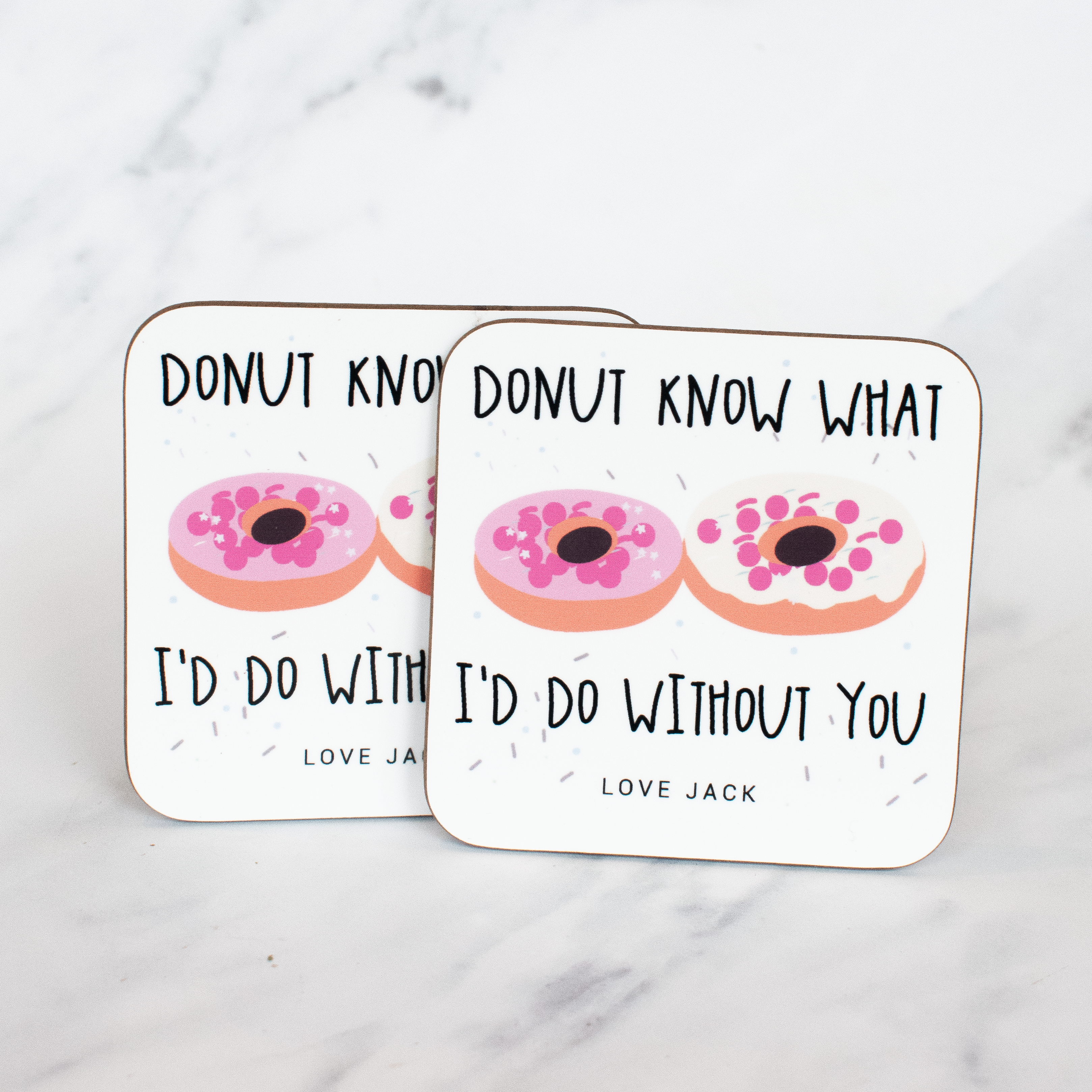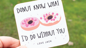 Surprise your friend with a one-of-a-kind gift that conveys how amazing they are. This personalized gift features a hand-drawn illustration by Amy Lucy, complete with the slogan "I donut know what I'd do without you". It comes with a gloss finish and wood backing, and you can choose to have it personalized or not.