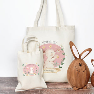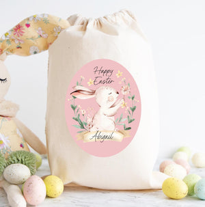 A beautiful Personalised Easter Sack personalised for your little one made from a cotton and has a chunky drawstring and is printed to a lovely standard. You can choose from a small or a medium depending on how big you need it.