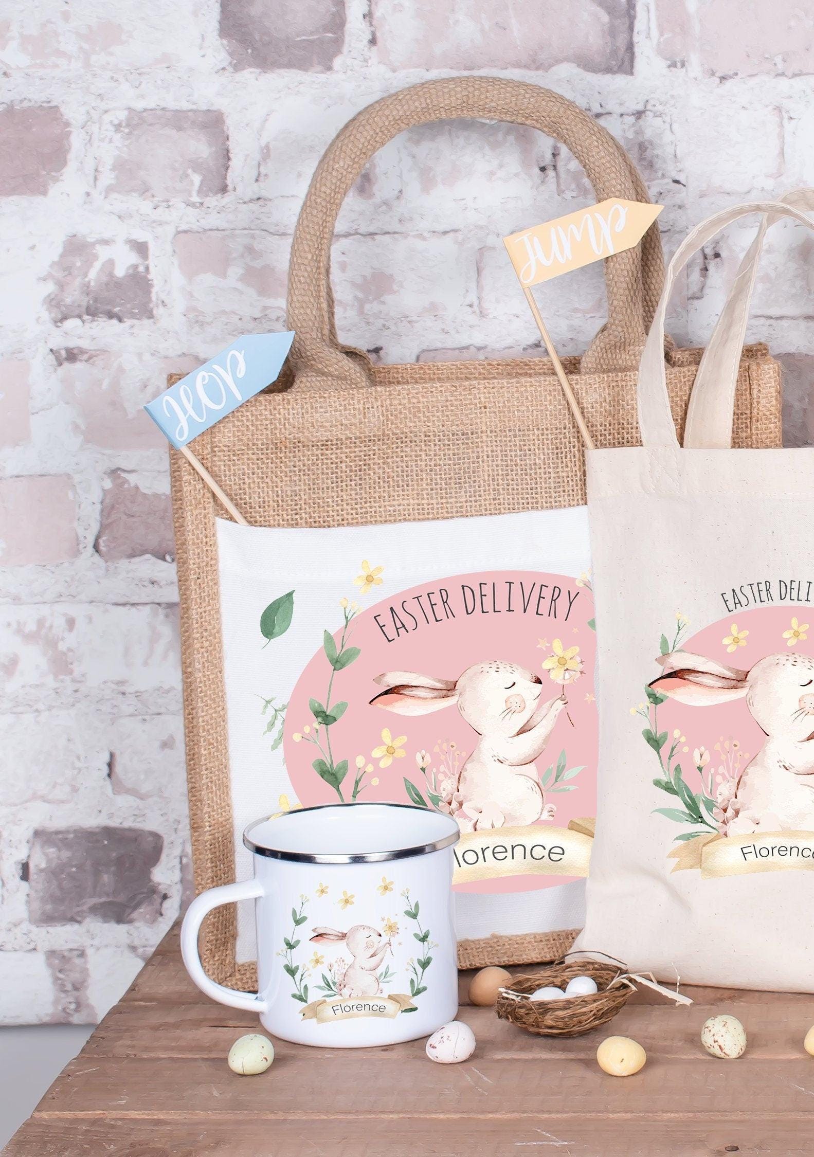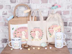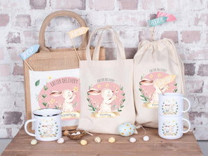 Personalised Easter Sack, Personalised Easter Bag, Child's Storage Bag, Easter Egg Hunt Gift Bag, Easter Mug, Child Mug Pink