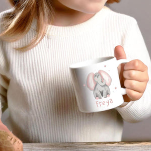 A lovely Elephant child‘s mug that can be a Personalised Gift For Her, Elephant Birthday Gift.